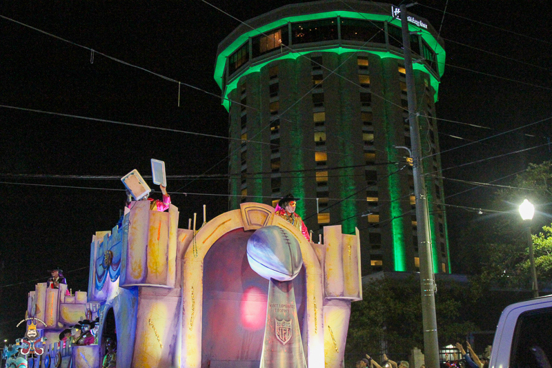 Tonight the Conde Cavaliers kicked off the 2024 Mardi Gras parades in Mobile, Alabama with their 2024 theme, “We Are The Champions.” Various sports were represents from baseball to auto…