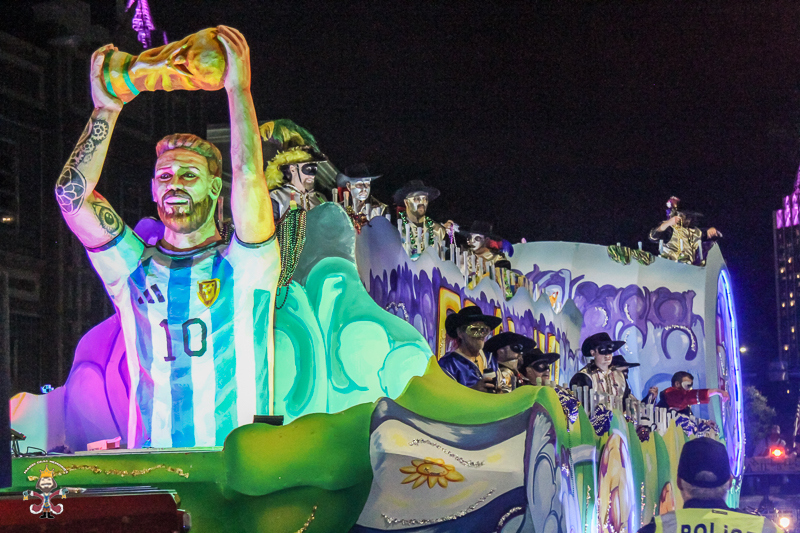 Tonight the Conde Cavaliers kicked off the 2024 Mardi Gras parades in Mobile, Alabama with their 2024 theme, “We Are The Champions.” Various sports were represents from baseball to auto…